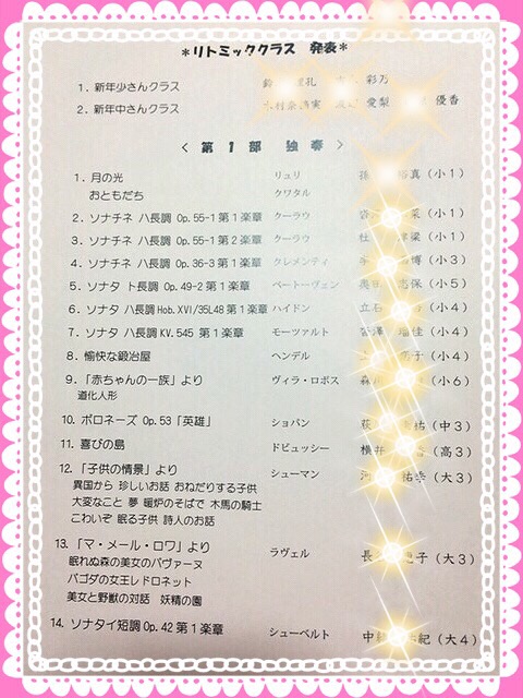永富ピアノ教室では、2年に1度お教室の発表会を行っております
